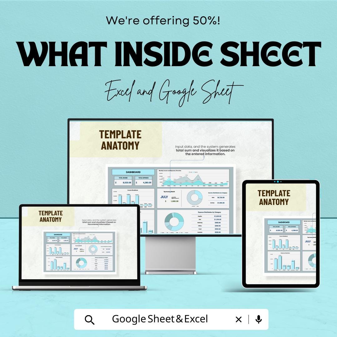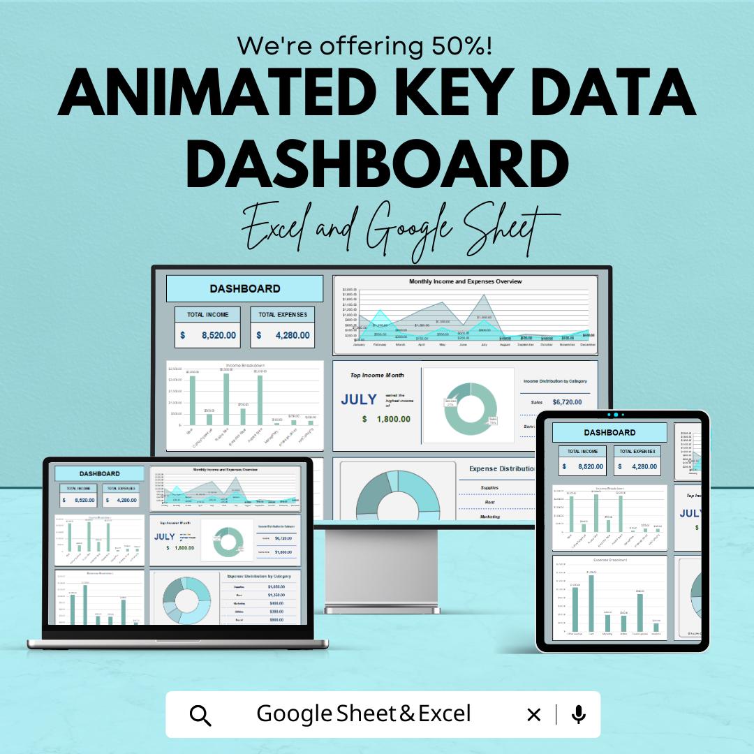 Animated Key Data Dashboard | Google Sheets and Excel Template | Interactive Business KPI Report | Expense Tracker & Income Report