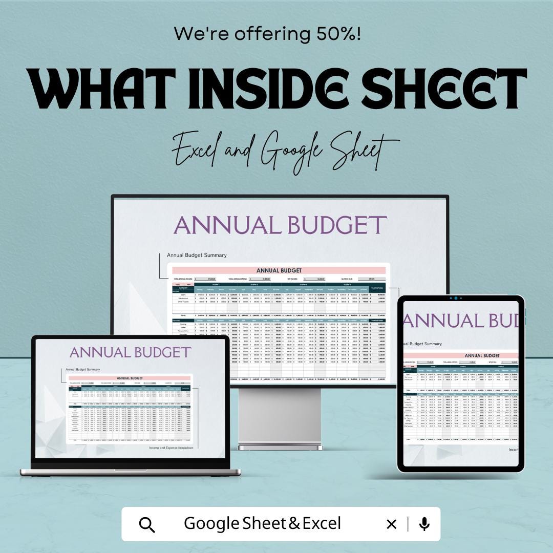 Annual Budget Sheet | Google Sheets & Excel Template | Yearly Financial Planner, Expense Tracker, Income Budget Spreadsheet