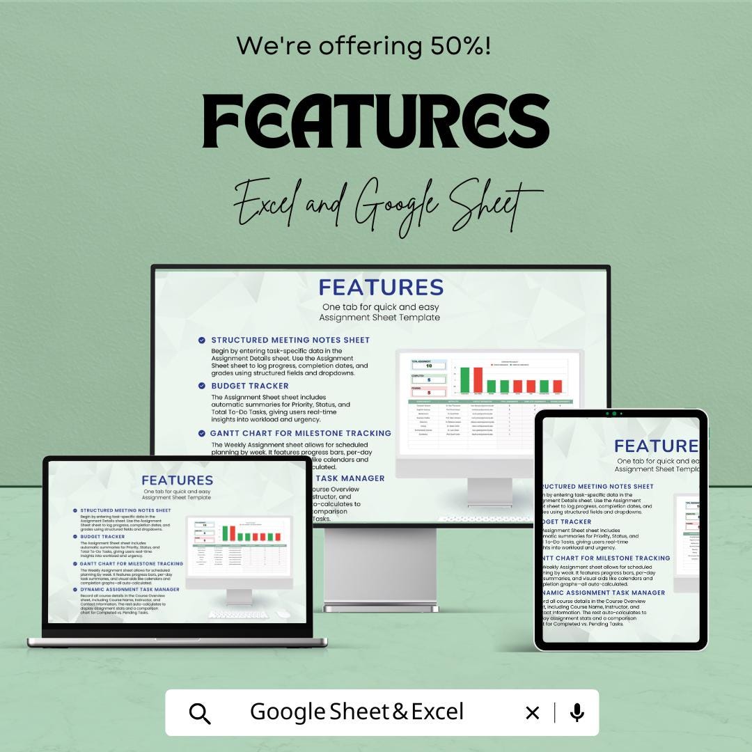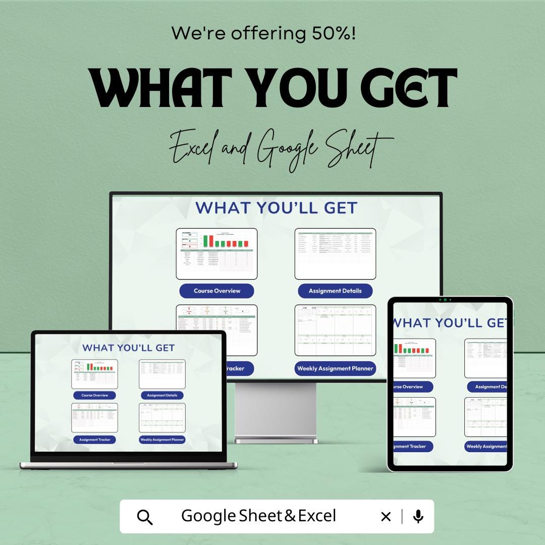 Stay organized and keep track of your academic progress with this all-in-one Assignment Tracker Sheet available in Excel and Google Sheets formats. This powerful tool helps you manage assignments, track deadlines, and monitor your progress for multiple courses in one place. Perfect for students who want to stay on top of their assignments and academic goals.