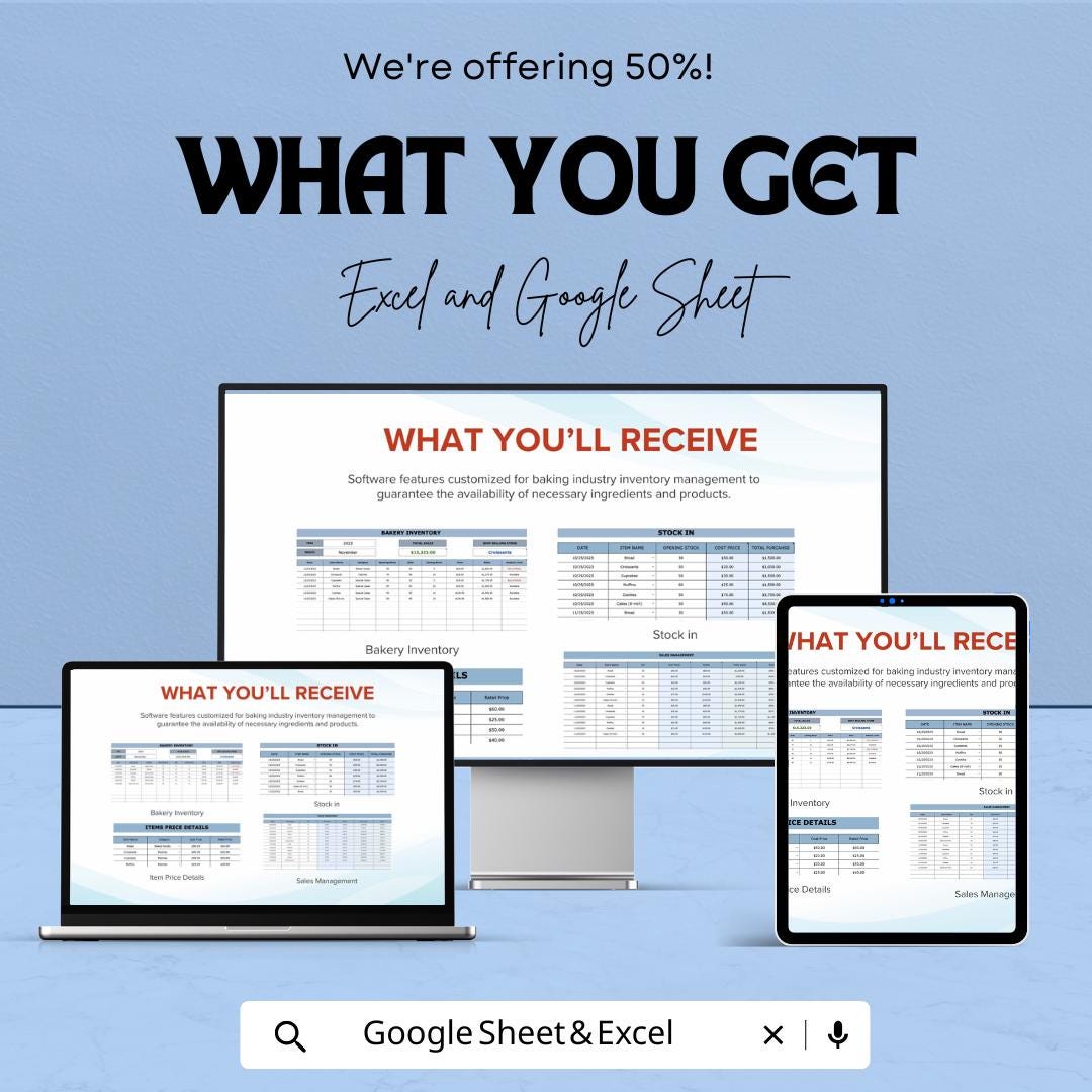 Bakery Inventory Sheet | Excel and Google Sheets | Track Sales, Stock & Best-Selling Items | Bakery Management Template