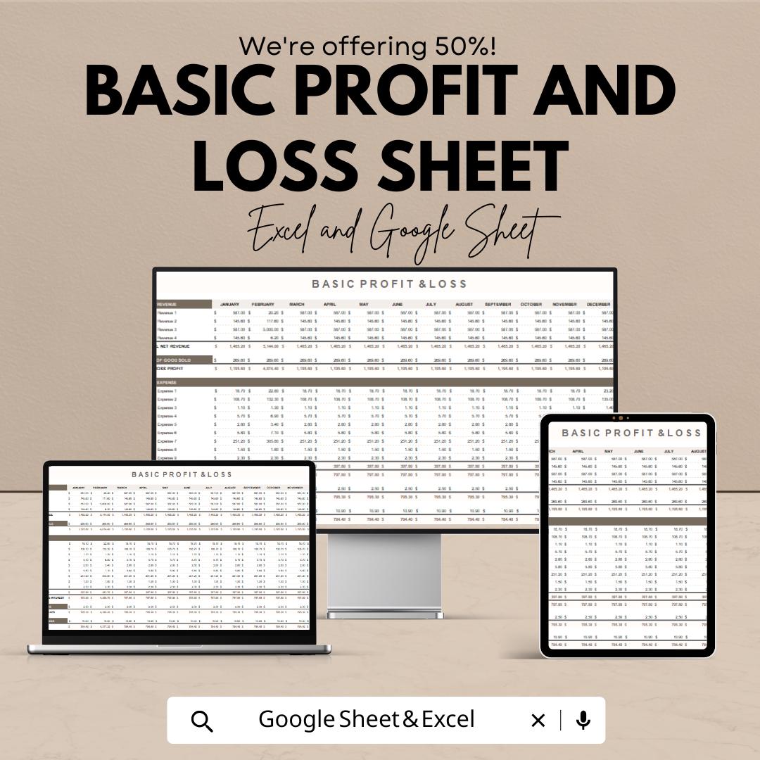 Basic Profit and Loss Sheet - Excel & Google Sheets Template - Simple, Easy-to-Use Financial Tracker