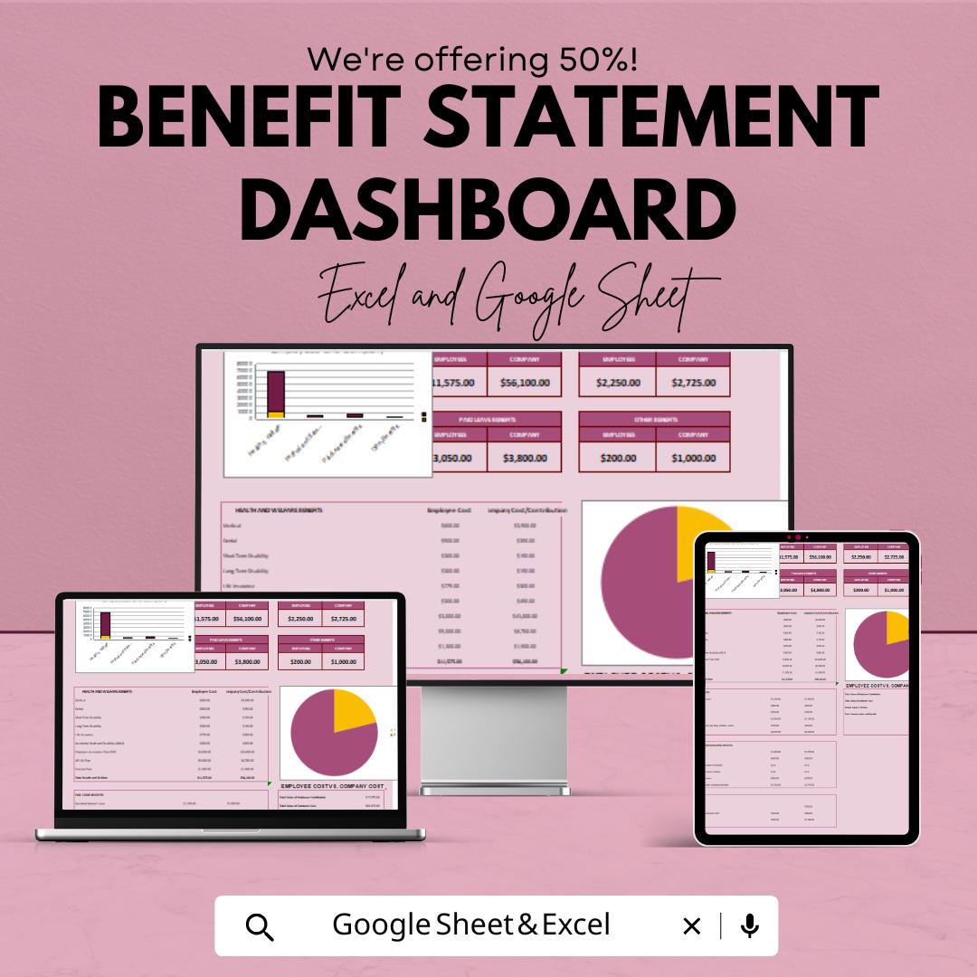Benefit Statement Dashboard - Excel and Google Sheet | Employee Benefits Tracking & Analysis | Company Benefits Dashboard Template