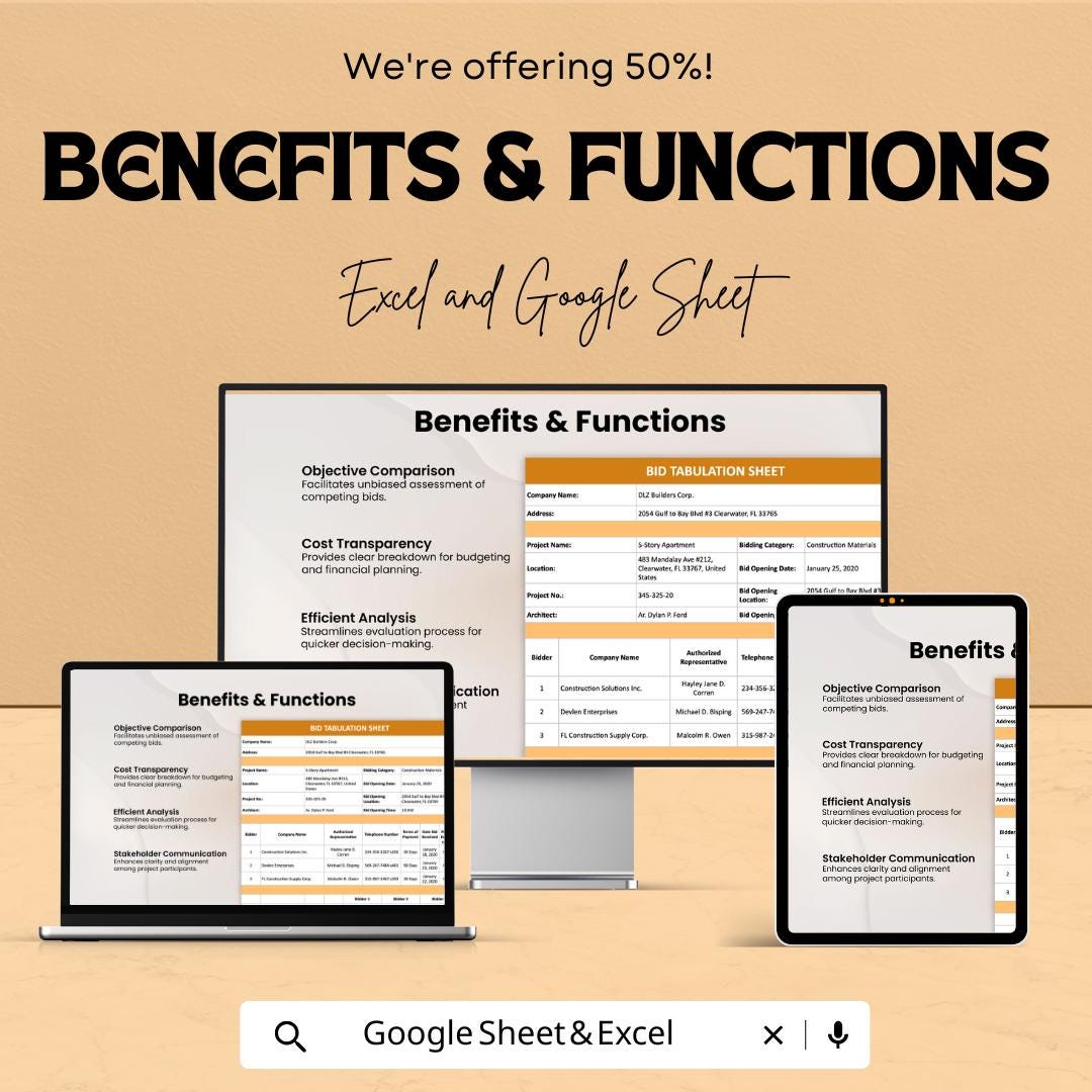 Editable Bid Tabulation Template in Excel and Google Sheets.