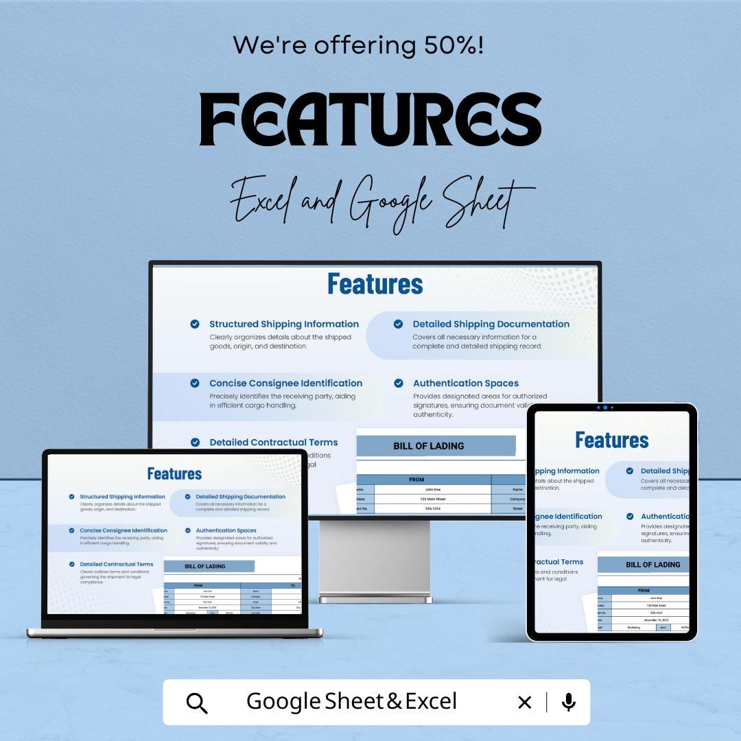 Bill of Lading Format Template - Excel & Google Sheets, Shipping Documentation, Freight Bill, Logistics Tracker, Digital Download,