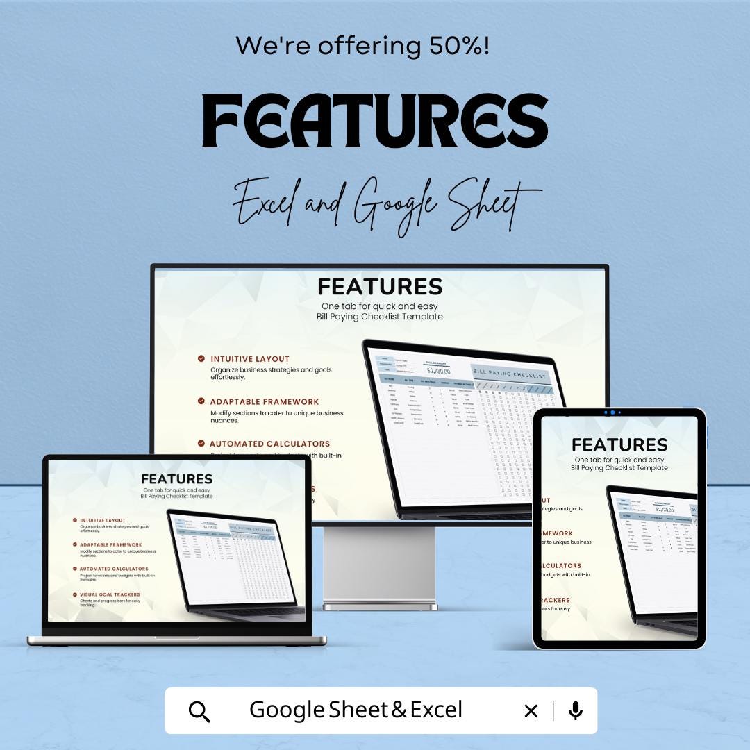 Bill Paying Checklist Template - Google Sheets, Bill Organizer, Payment Tracker, Monthly Bill Checklist, Budgeting Tool, Digital Download