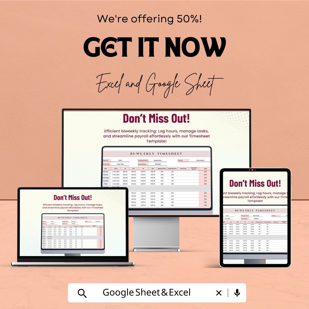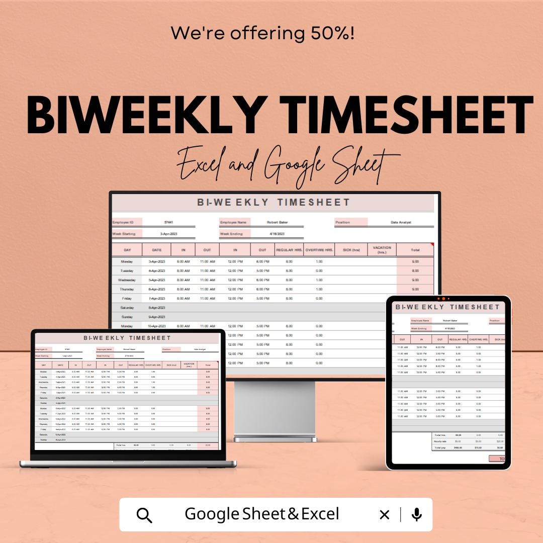 Biweekly Timesheet Template - Easy Excel & Google Sheet for Payroll Tracking, Time Management, and Task Logging