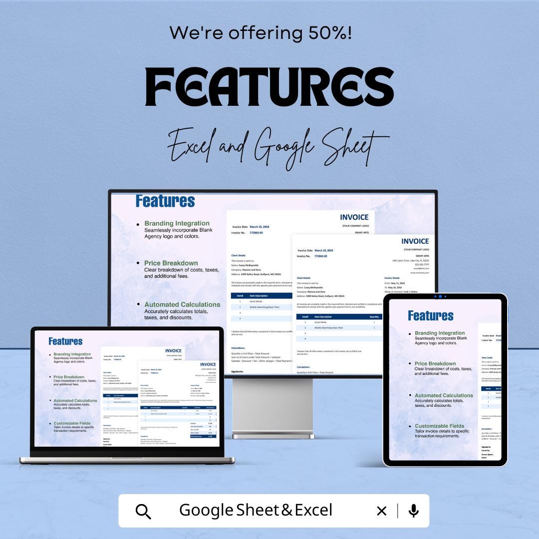 Blank Agency Invoice Template - Customizable Excel & Google Sheets - Easy-to-Use Professional Invoice