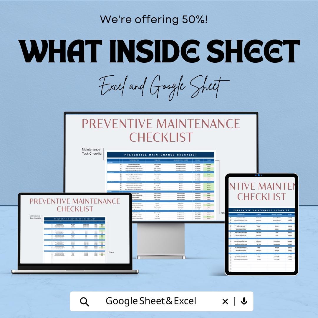 Instant Download: Access the sheet immediately after purchase and start managing your preventive maintenance routine without delay.