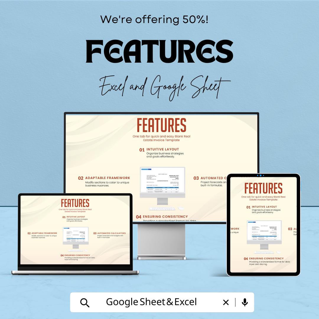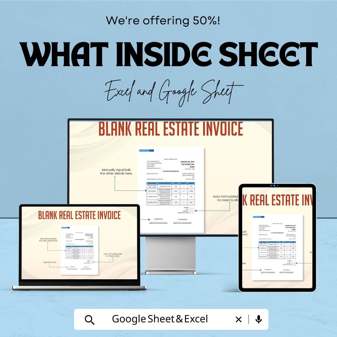 Blank Real Estate Invoice Sheet | Excel & Google Sheets Template | Customizable Real Estate Invoice | Instant Download |