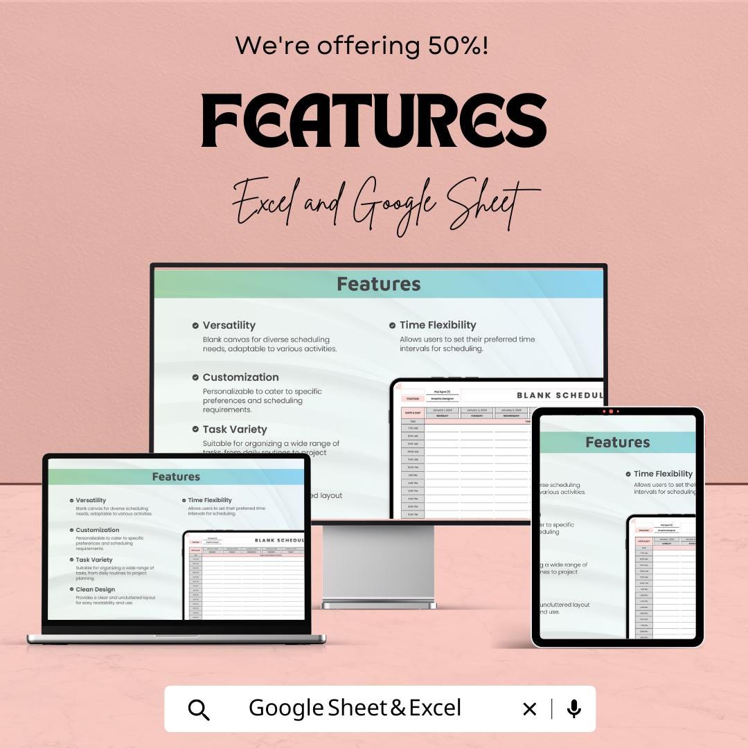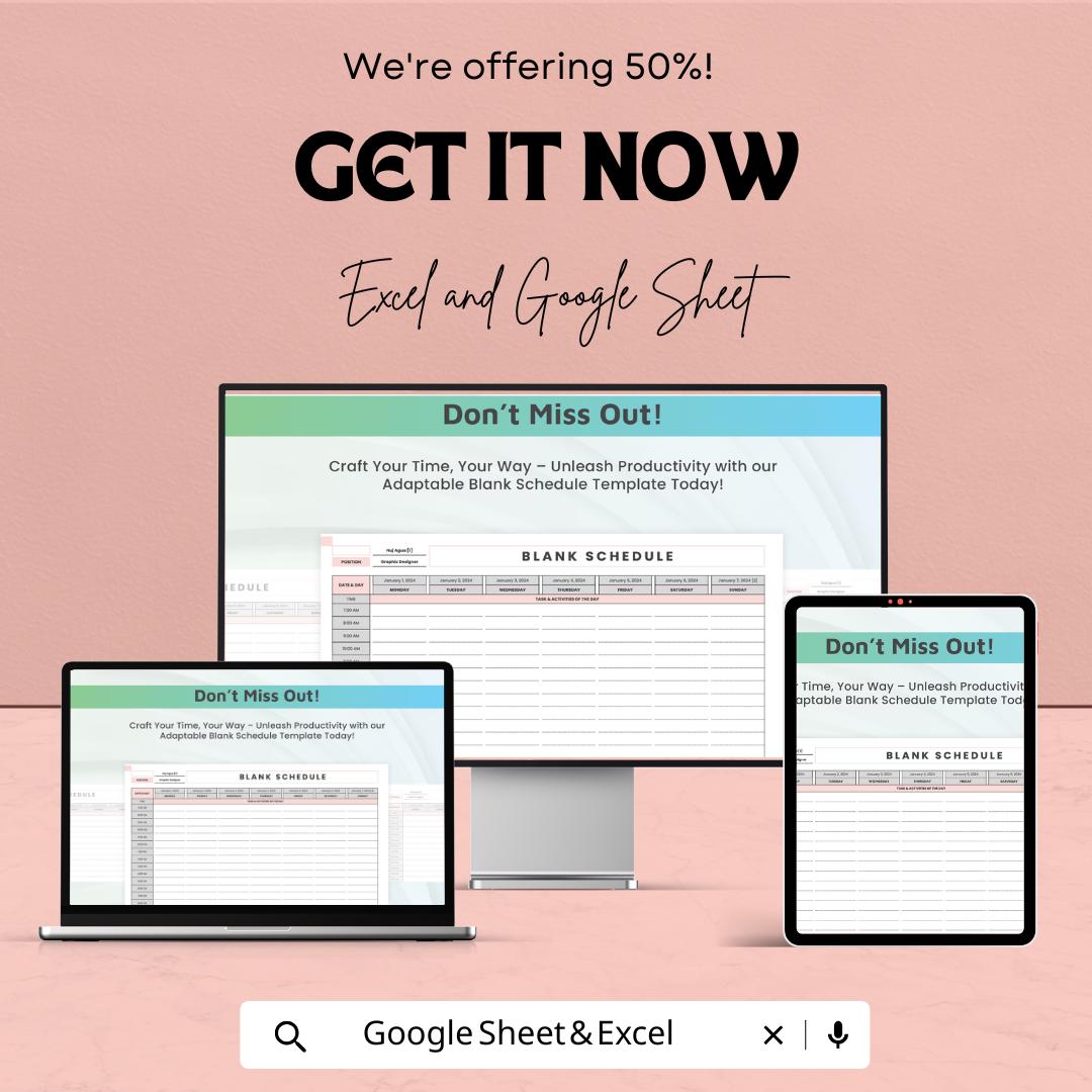 Blank Schedule Sheet - Customizable Weekly Planner - Excel & Google Sheet - Time Management Template - Printable Daily Schedule