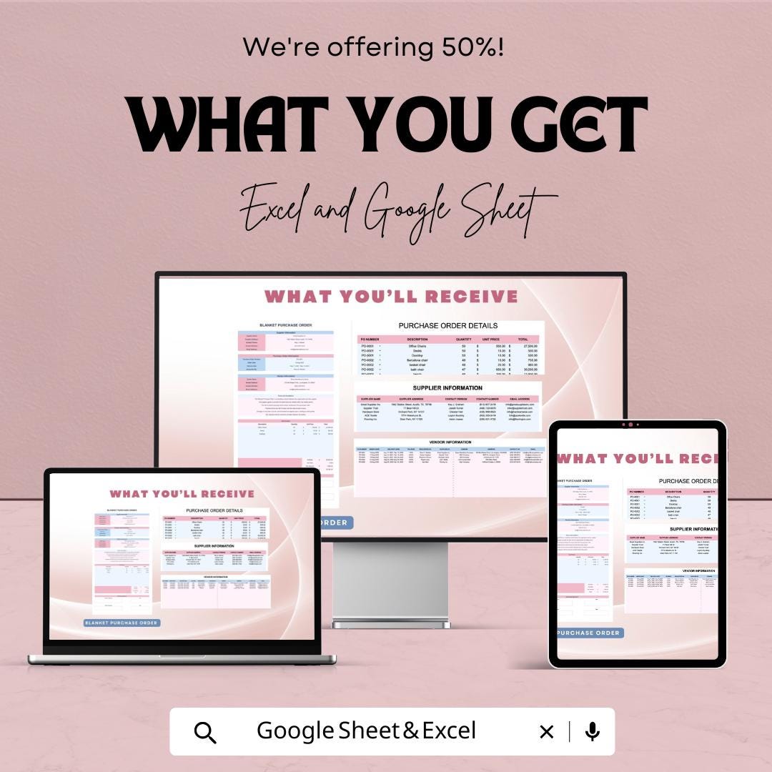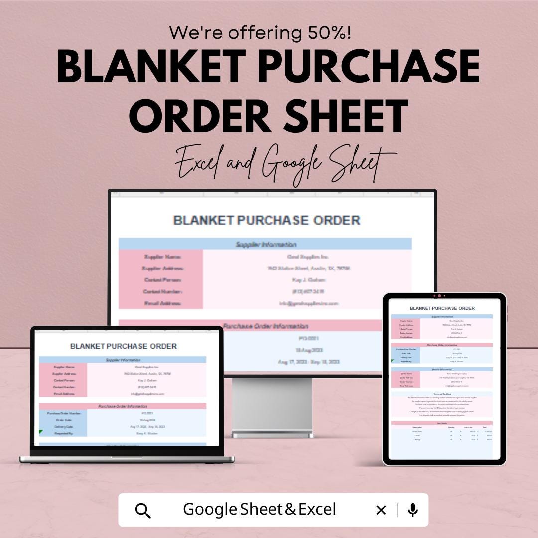 Blanket Purchase Order Sheet - Google Sheets & Excel - Purchase Order Management - Customizable Template