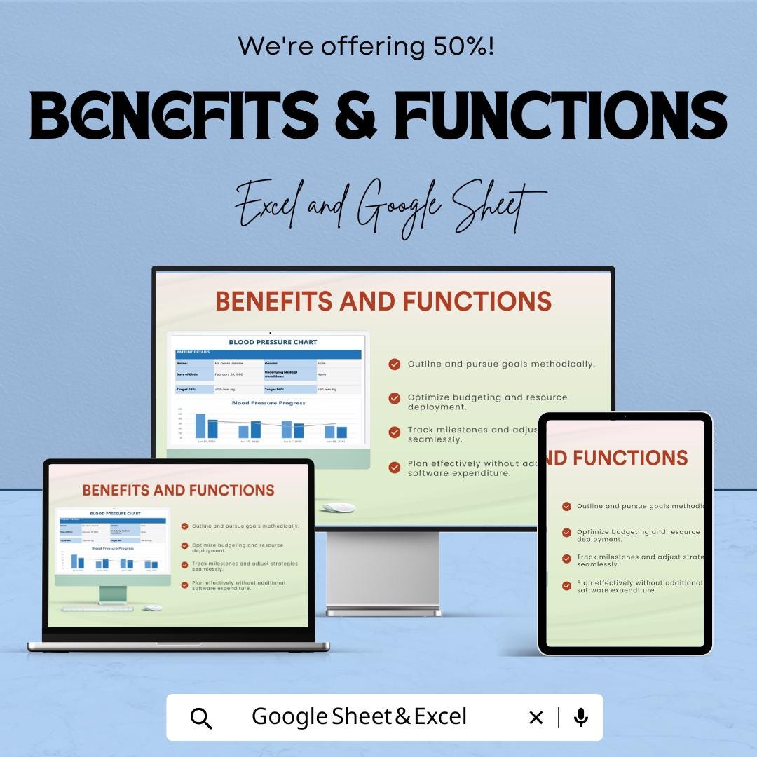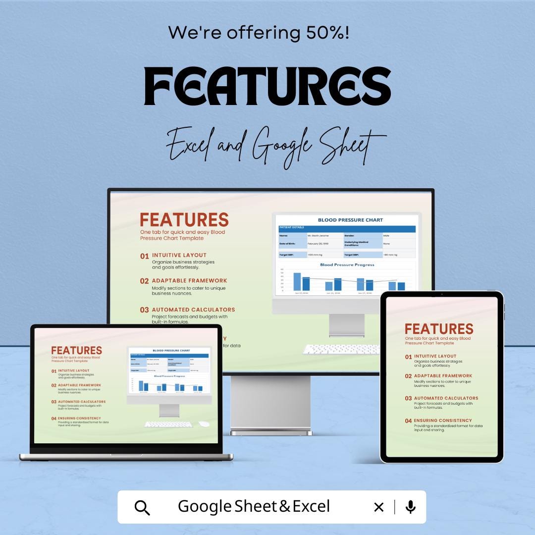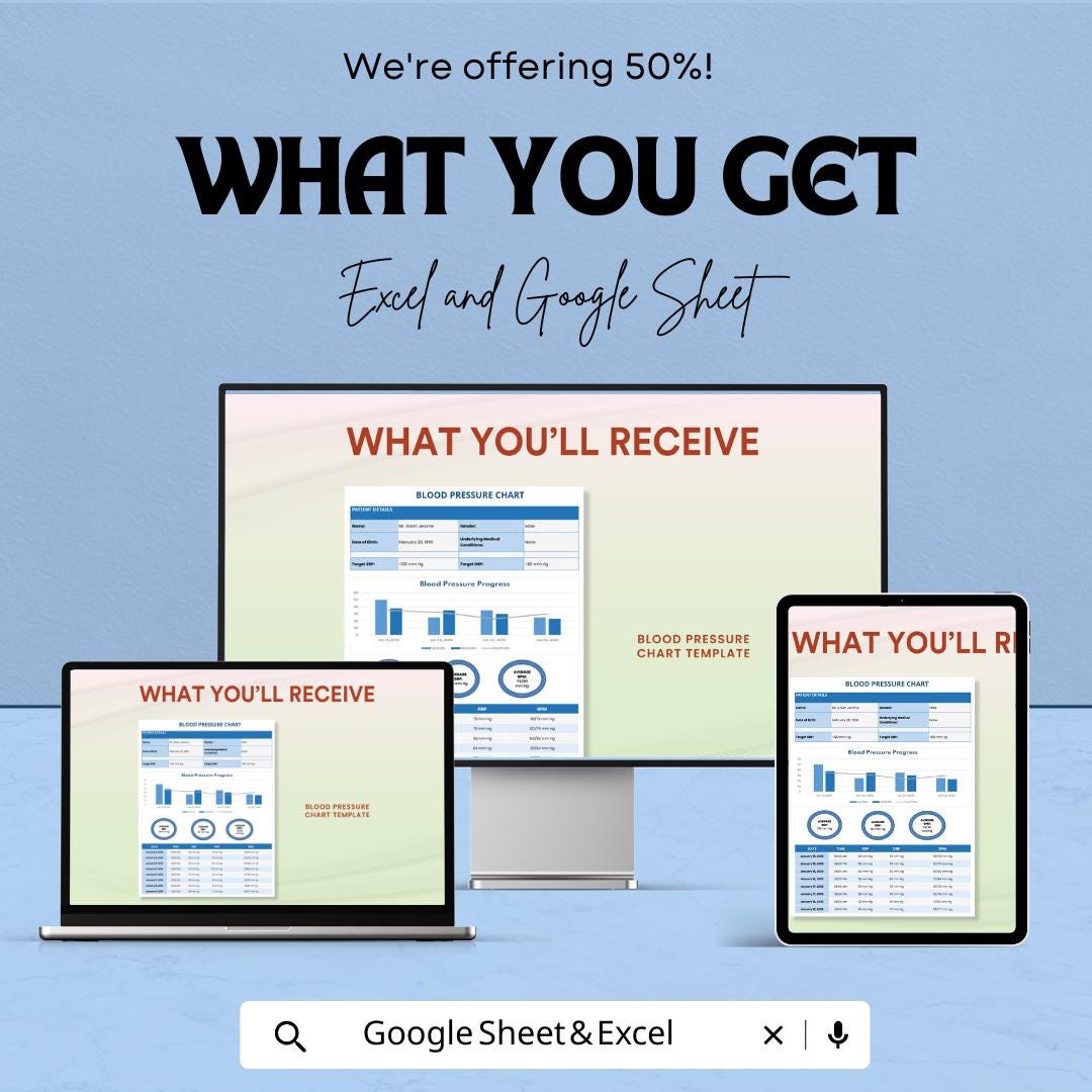 Blood Pressure Chart Sheet - Track BP Progress - Health Monitoring Template - Google Sheets & Excel - Easy to Use for Medical Tracking