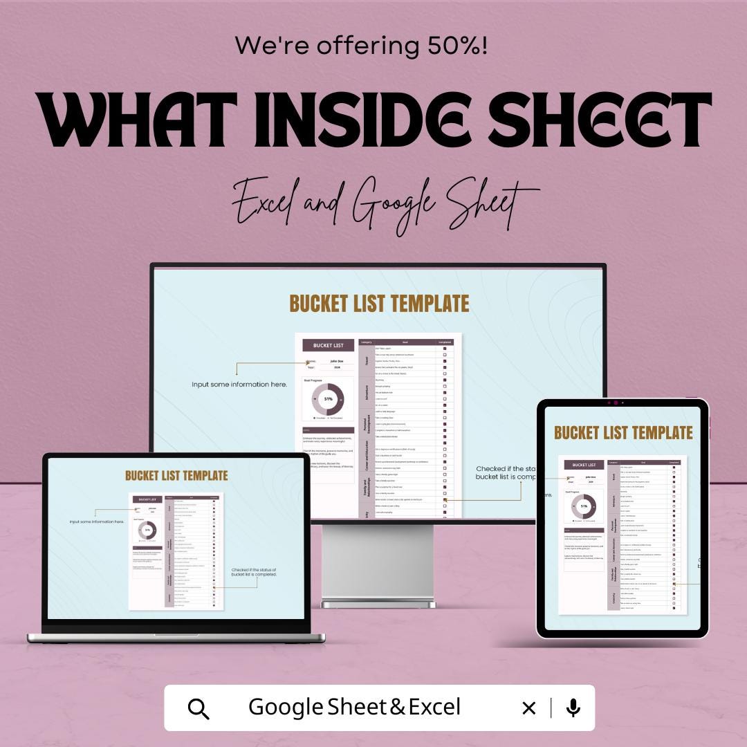 Bucket List Sheet Template | Digital Download | Google Sheets & Excel | Goal Tracker | Travel Planner | Editable Checklist