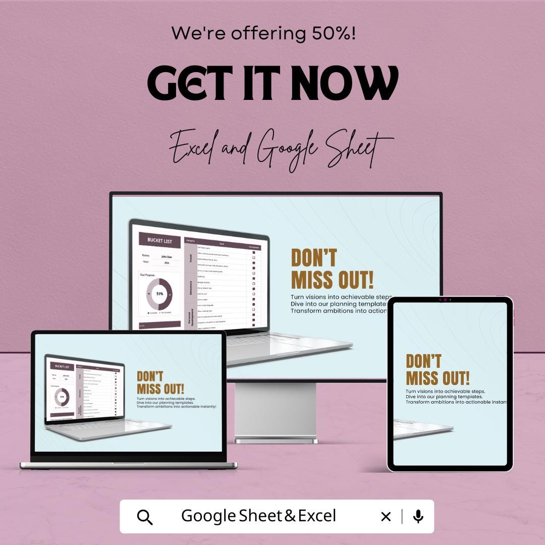 Our Bucket List Sheet is not just a simple checklist – it’s a motivational visual tracker designed to keep you on course as you reach for your dreams. Backed by a clean aesthetic, functional layout, and easy-to-edit format, this tool helps you make every goal feel achievable and exciting.