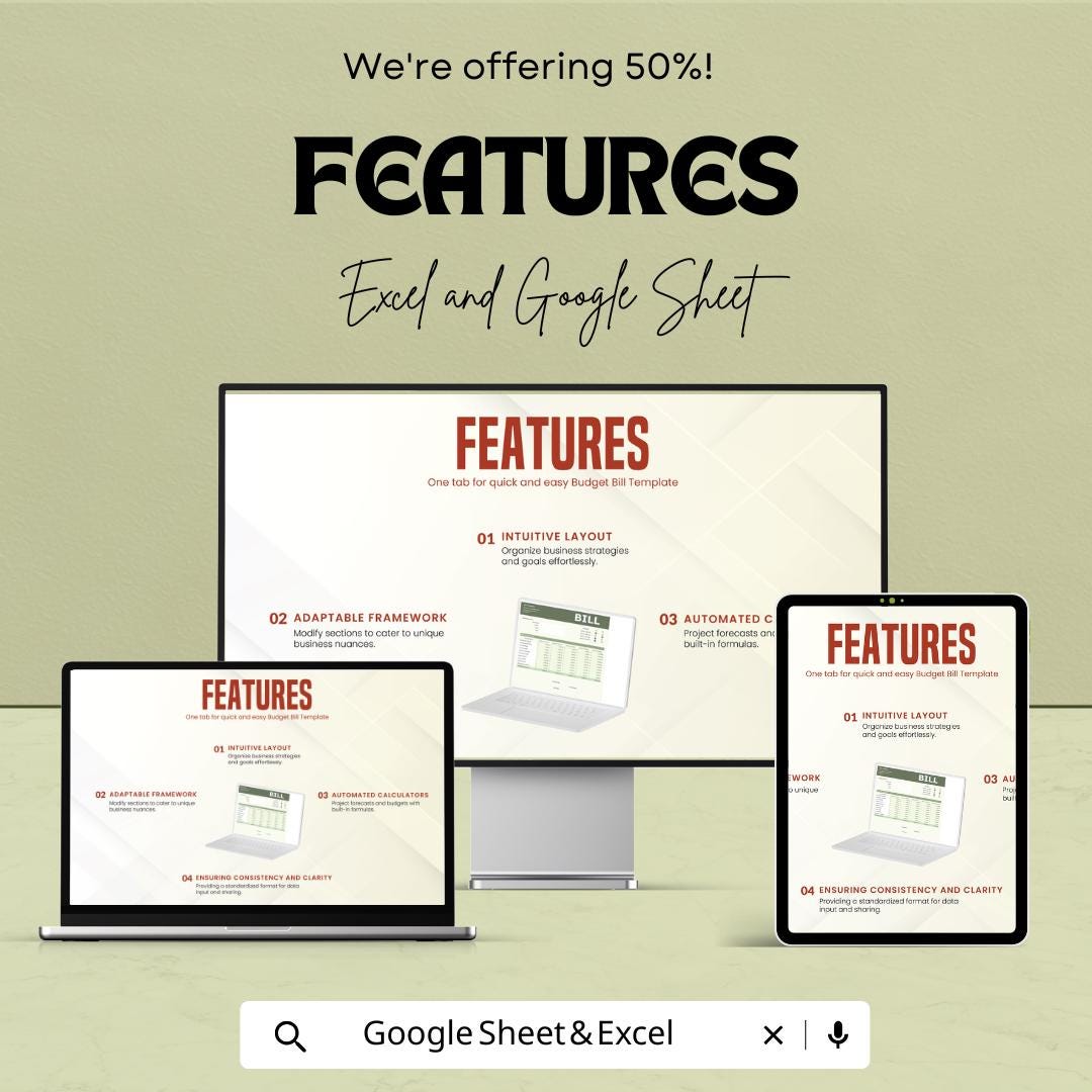A Budget Bill Template compatible with both Excel and Google Sheets.