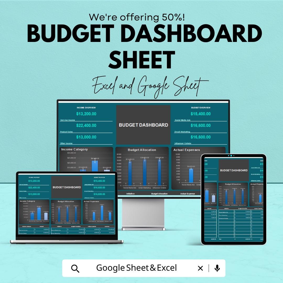 Get your Budget Dashboard Sheet today and start managing your finances with confidence!