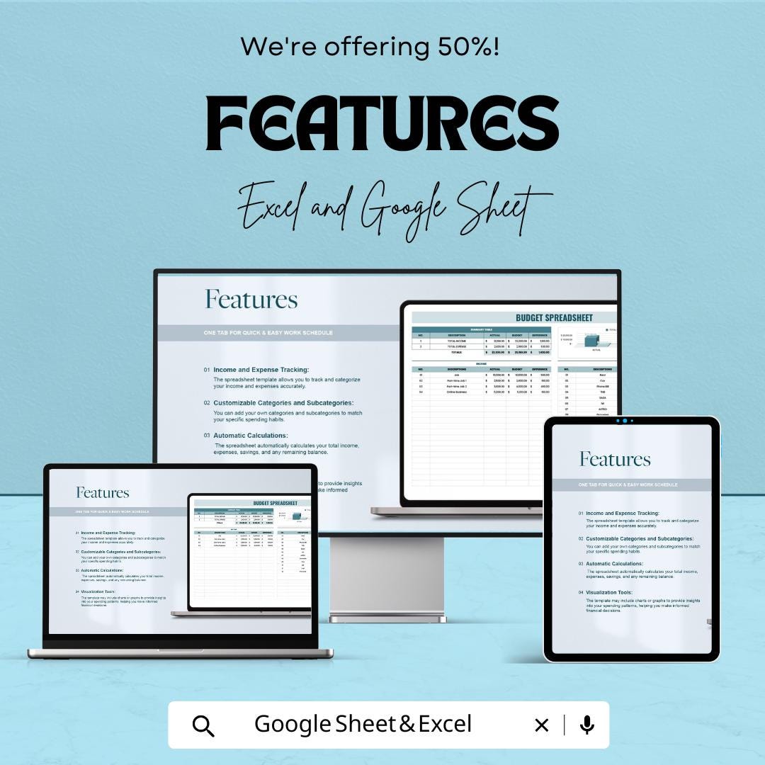 Excel & Google Sheets Compatible: Seamlessly edit and update your budget across both platforms.
