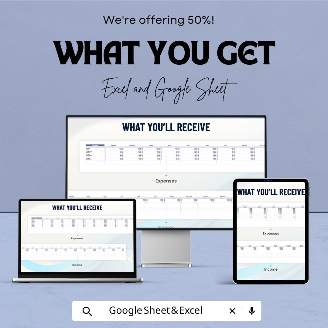 Unlock your financial success with our Budget Workbook Sheet! This easy-to-use budget planner is available in both Google Sheets and Excel formats. Designed for anyone looking to get their finances in order, this workbook offers clear visualization, income tracking, and expense management to help you achieve your financial goals.