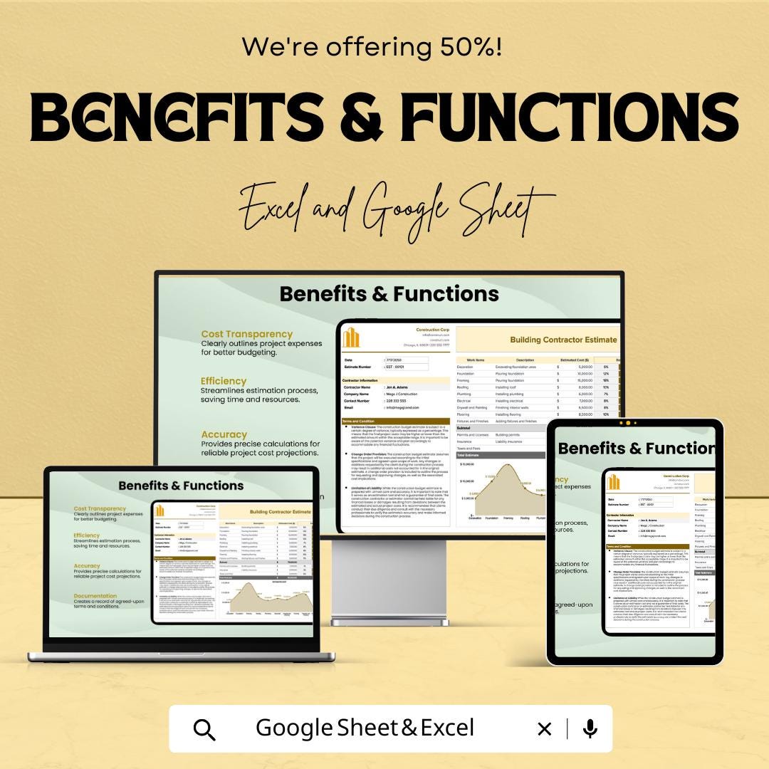 Building Contractor Estimate Sheet | Editable Excel & Google Sheet | Construction Budgeting Template | Project Cost Estimator