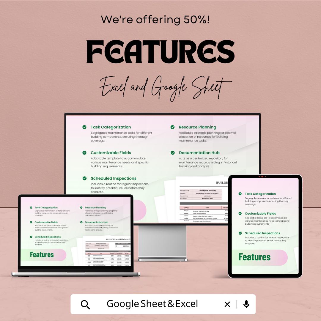 Building Maintenance Schedule Sheet - Excel & Google Sheets Template for Efficient Building Management