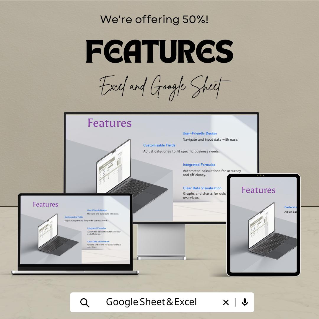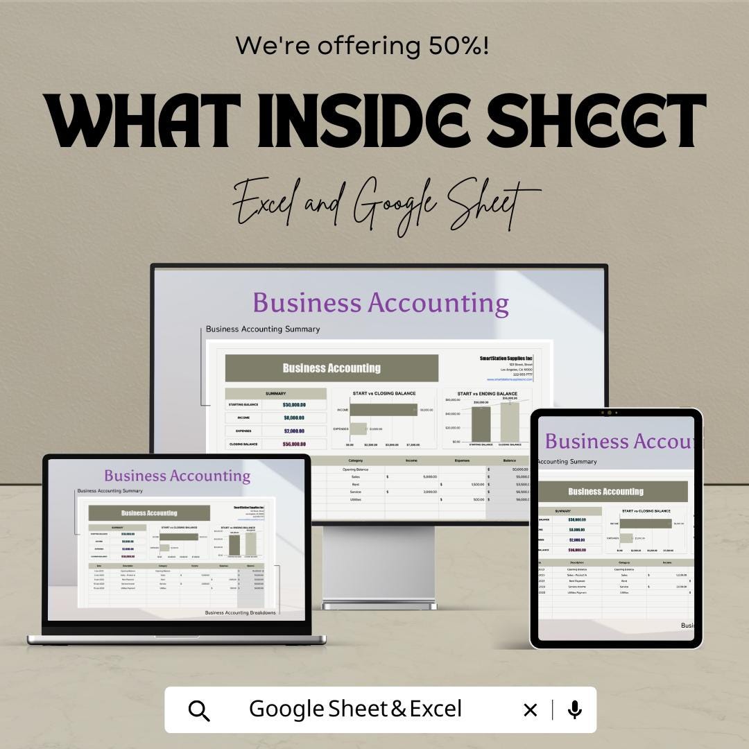 Business Accounting Spreadsheet - Excel & Google Sheet - Track Income, Expenses, and Profit - 50% Off