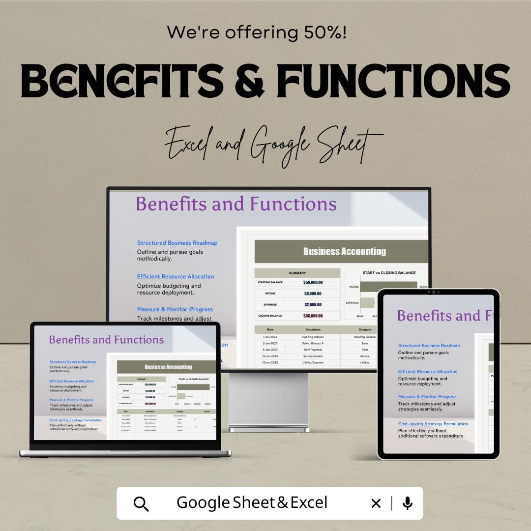 Comprehensive Financial Tracking: Track your income, expenses, and overall business performance, all in one sheet. The Business Accounting Spreadsheet makes it easy to monitor your financial health.