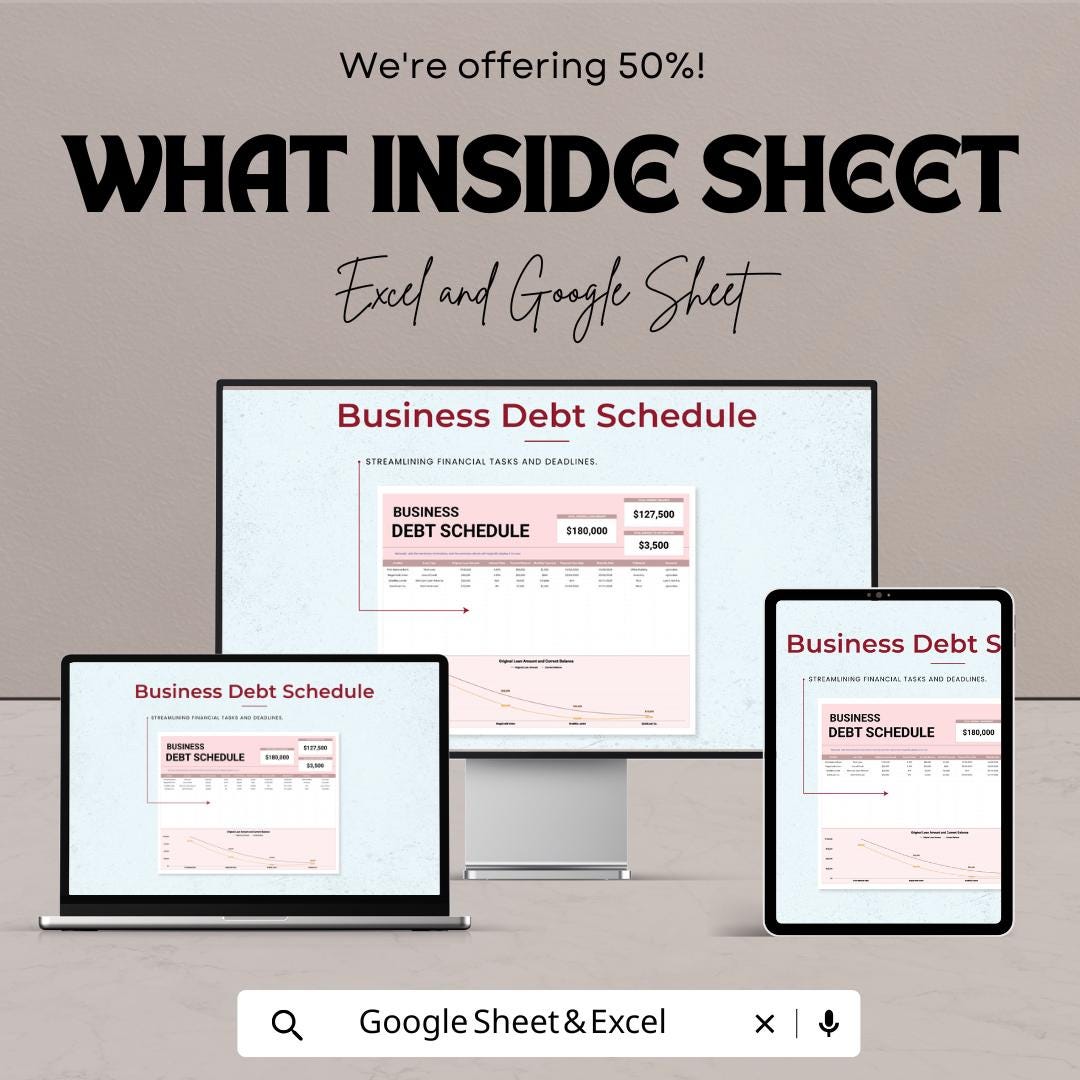 Business Debt Schedule Template - Excel & Google Sheets - Track Loan Payments and Debt Management - 50% Off