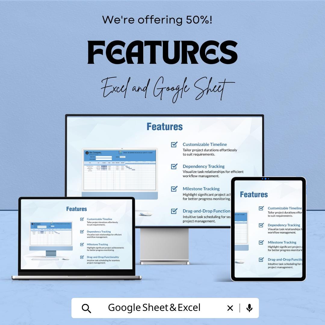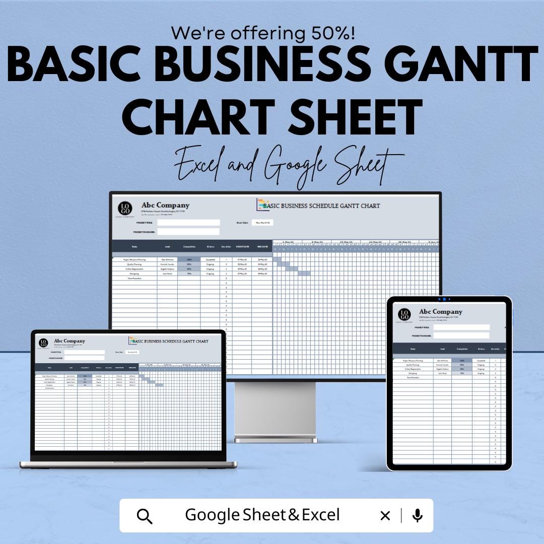 Stay ahead of your project deadlines with our Basic Business Gantt Chart Sheet – fully compatible with Google Sheets and Excel.