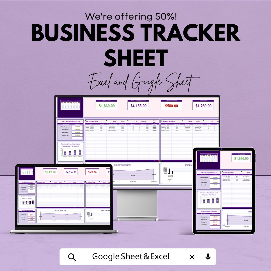 Business Tracker Sheet for Google Sheets and Excel
