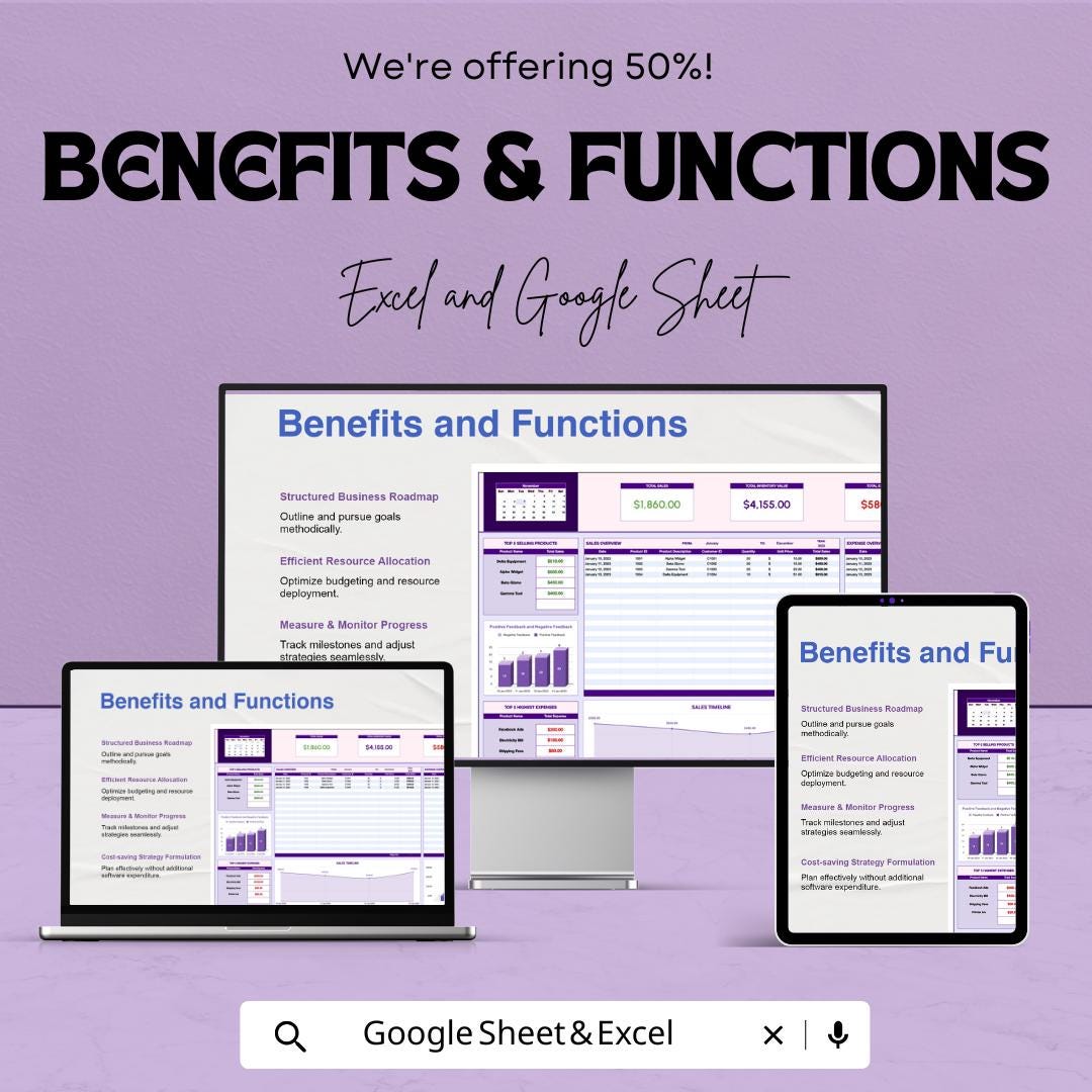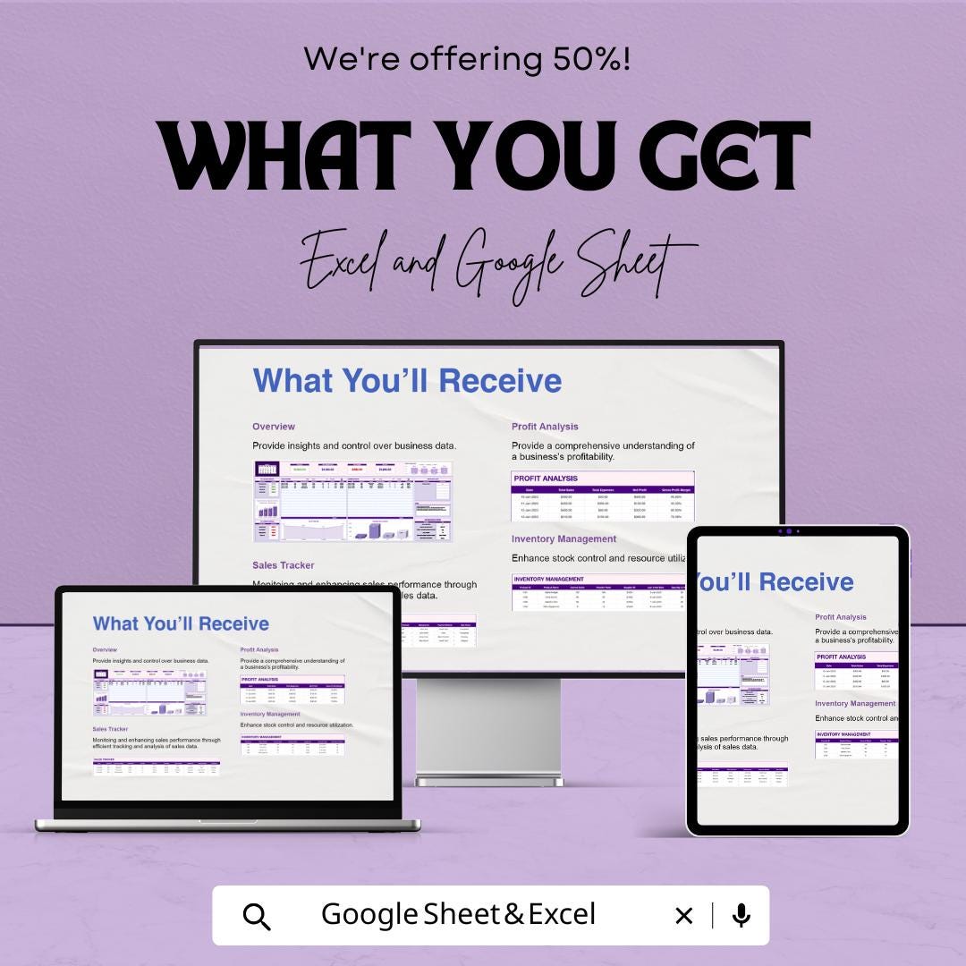 Business Tracker Template - Excel and Google Sheets - Track Sales, Expenses, Profits & Performance - 50% Off