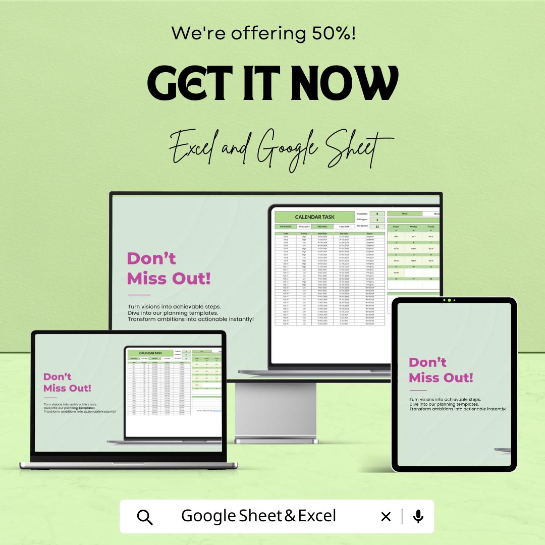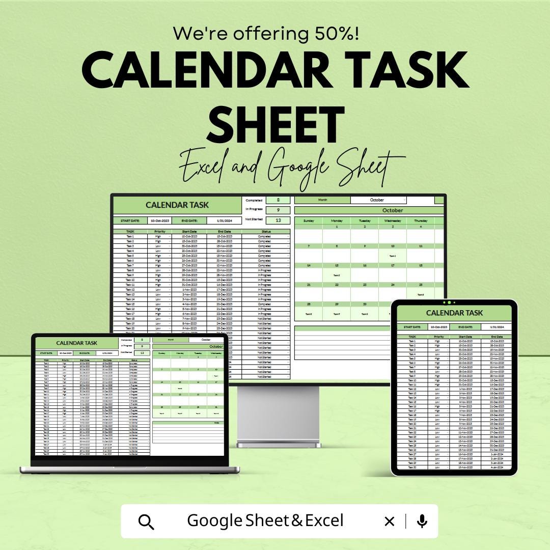 Calendar Task Sheet Template | Google Sheet and Excel | Easy Task Management | Project Planning & Scheduling | Instant Download