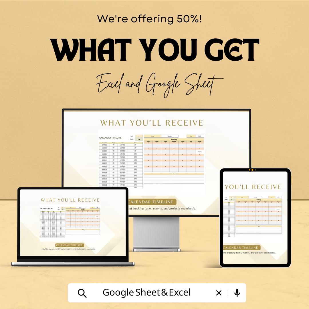 Calendar Timeline Sheet | Excel and Google Sheets | Color-Coded Timeline Template | Plan & Track Events | Customizable Monthly Calendar |
