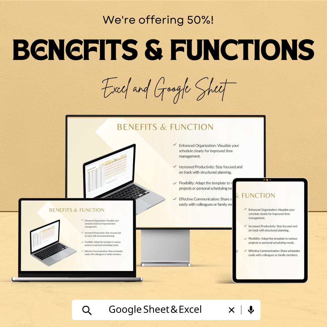Excel & Google Sheets Calendar Template: Perfect for both platforms, ensuring seamless access and compatibility.