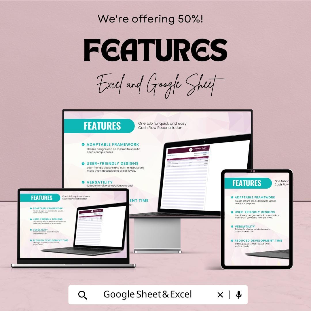 Ensure seamless management of your business's financial flow with our Cash Flow Reconciliation Sheet template. Perfect for small businesses, freelancers, or anyone managing income and expenses, this easy-to-use template is compatible with both Google Sheets and Excel.