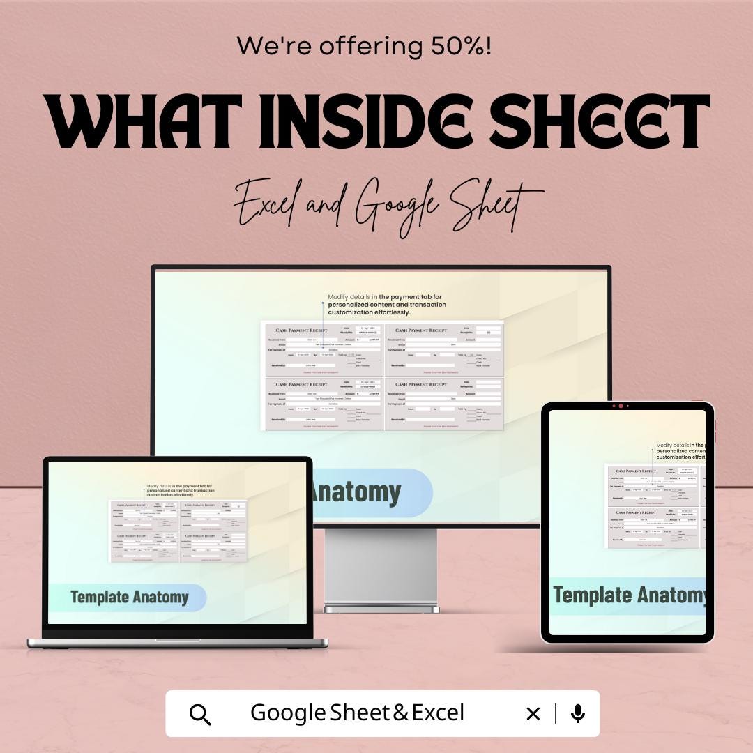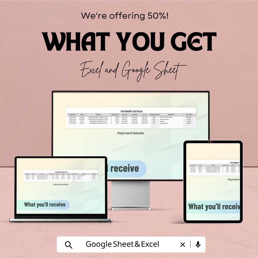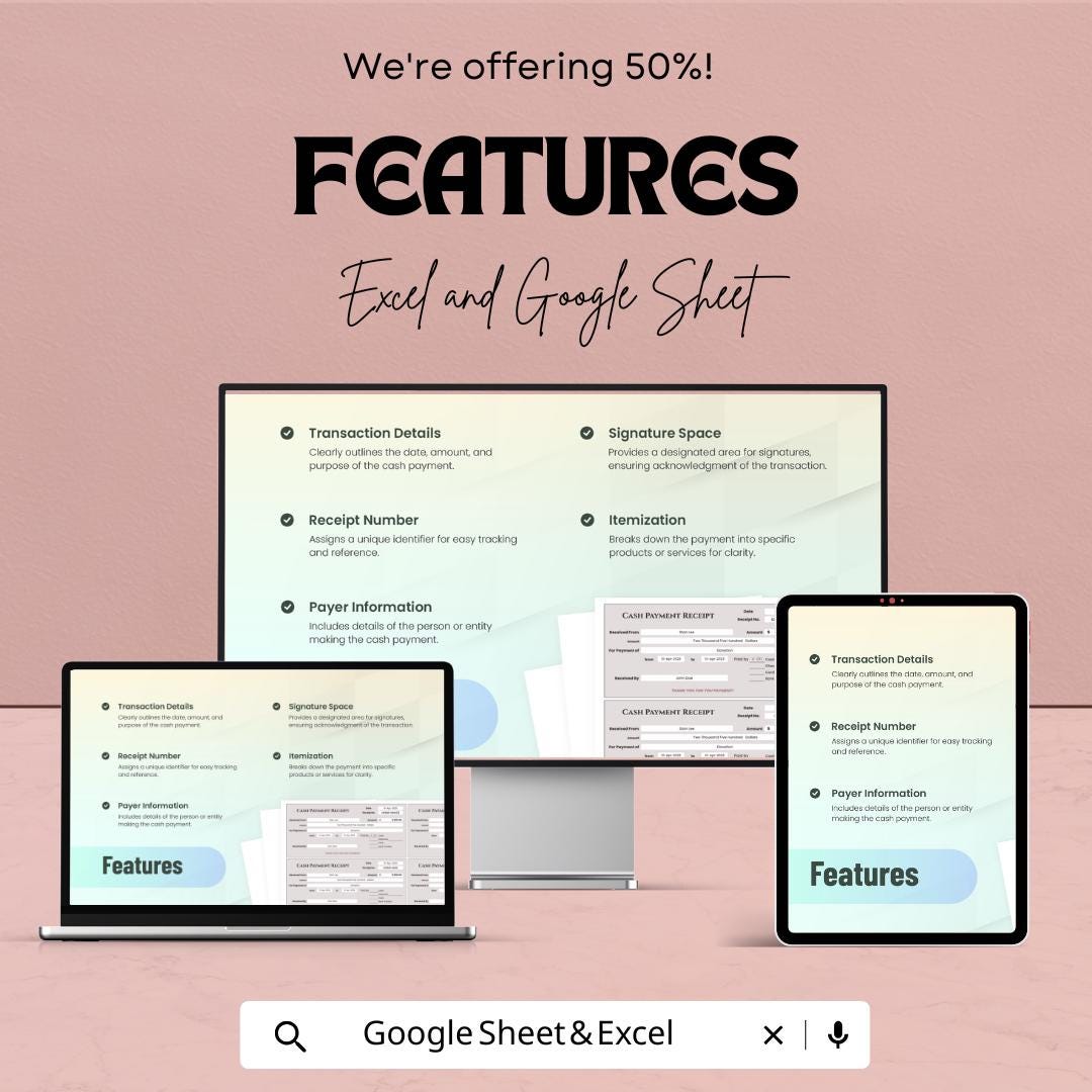 Cash Payment Receipt Template – Excel & Google Sheet – Financial Documentation, Proof of Payment, Transaction Record – Editable Template