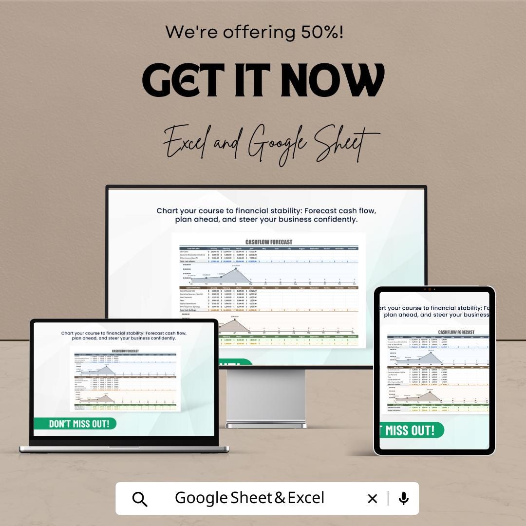 Cashflow Forecast Sheet - Excel and Google Sheet | Financial Planning & Cash Flow Management | Budget Forecast Template