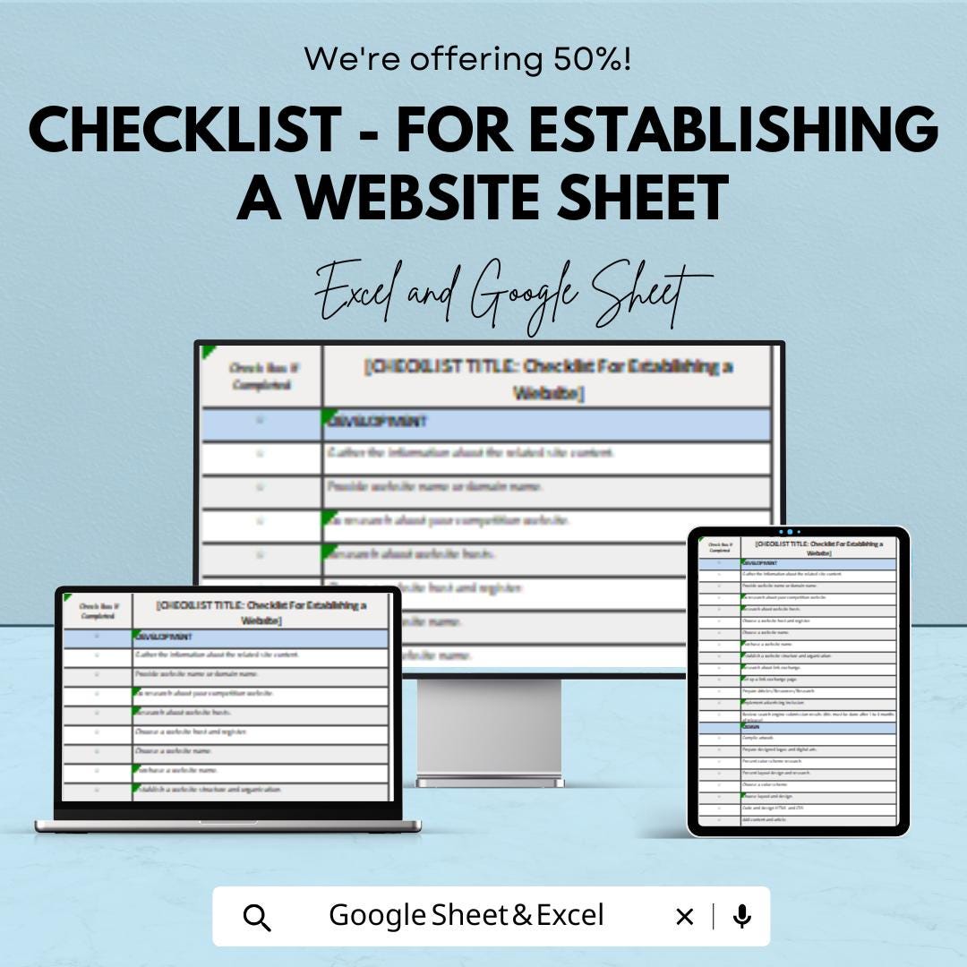 Checklist for Establishing a Website - Easy Website Setup Template for Business - Google Sheet & Excel