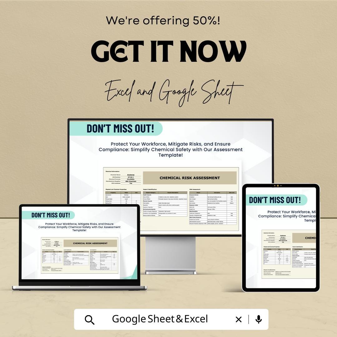 Chemical Risk Assessment Sheet - Google Sheet Template for Workplace Safety | Hazard Identification, Exposure Assessment & Risk Control
