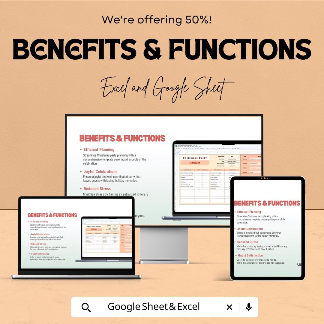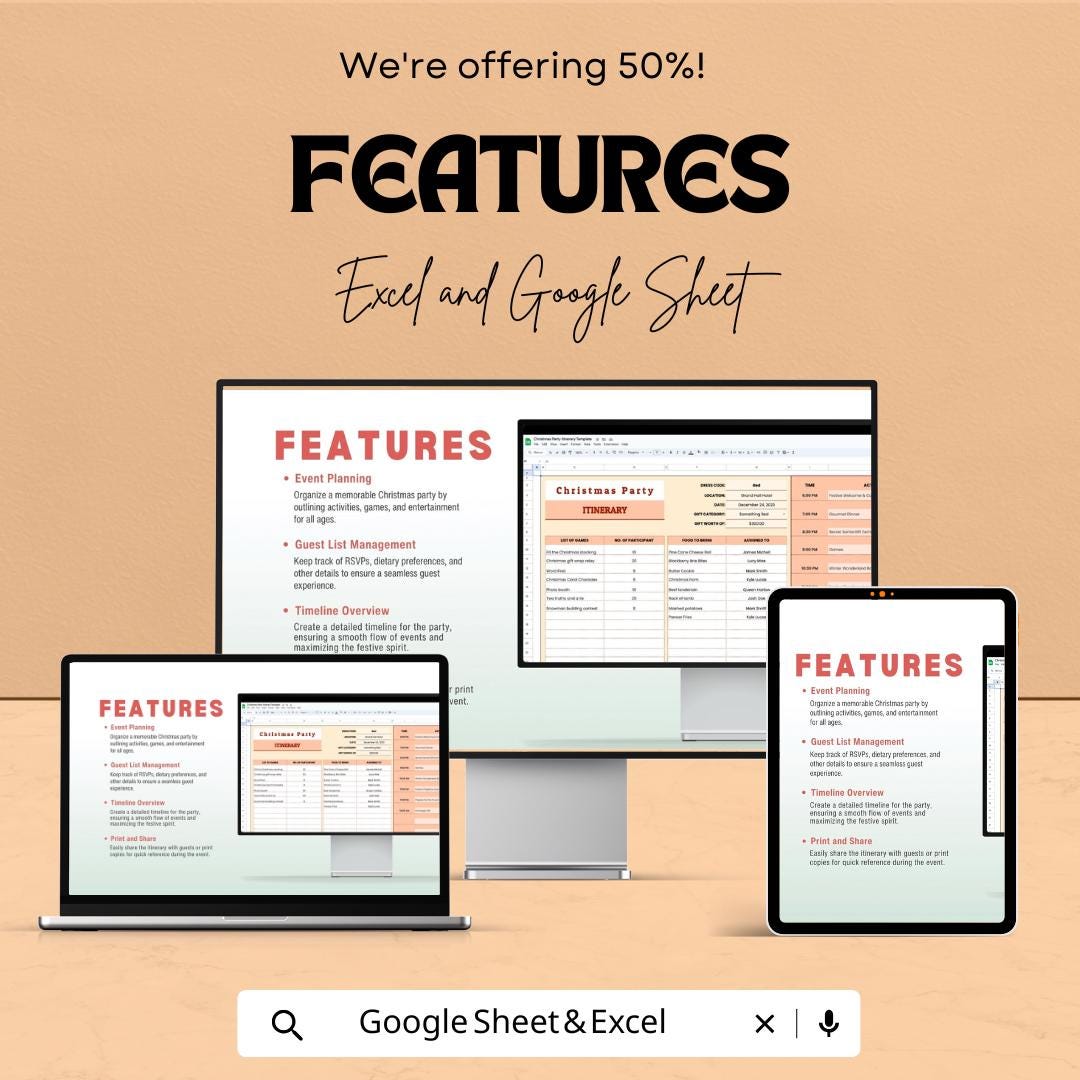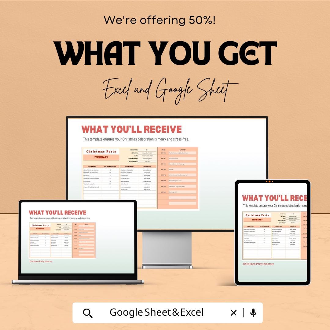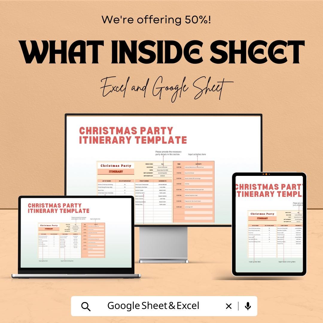 Our Christmas Party Itinerary Sheet is fully customizable, available in both Excel and Google Sheets, and is designed to help you: