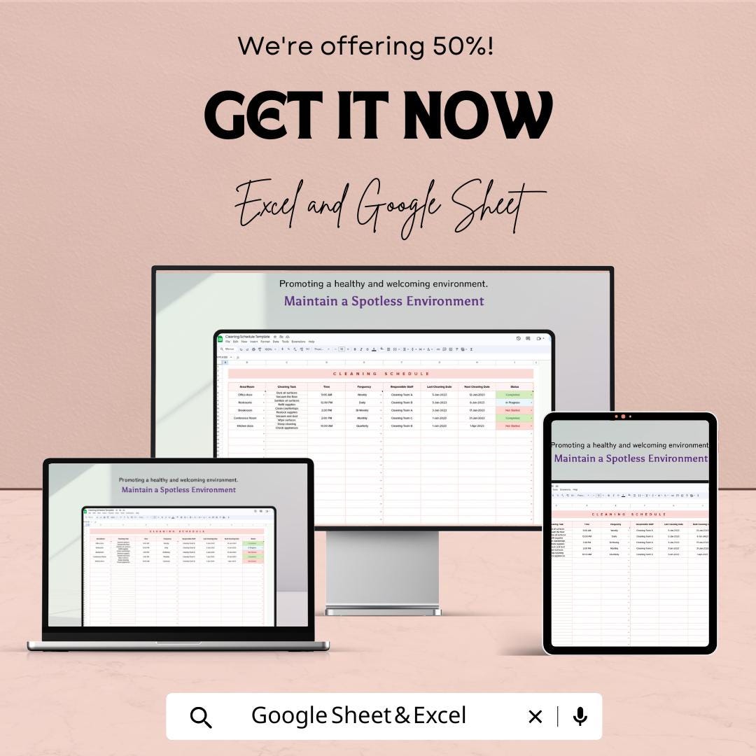 Customizable Template: Fully editable in Excel and Google Sheets, allowing you to tailor it to your cleaning routine.