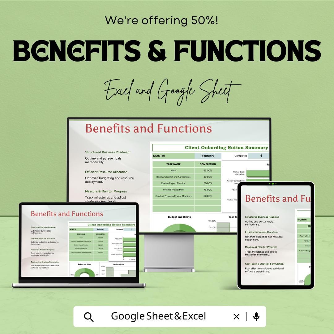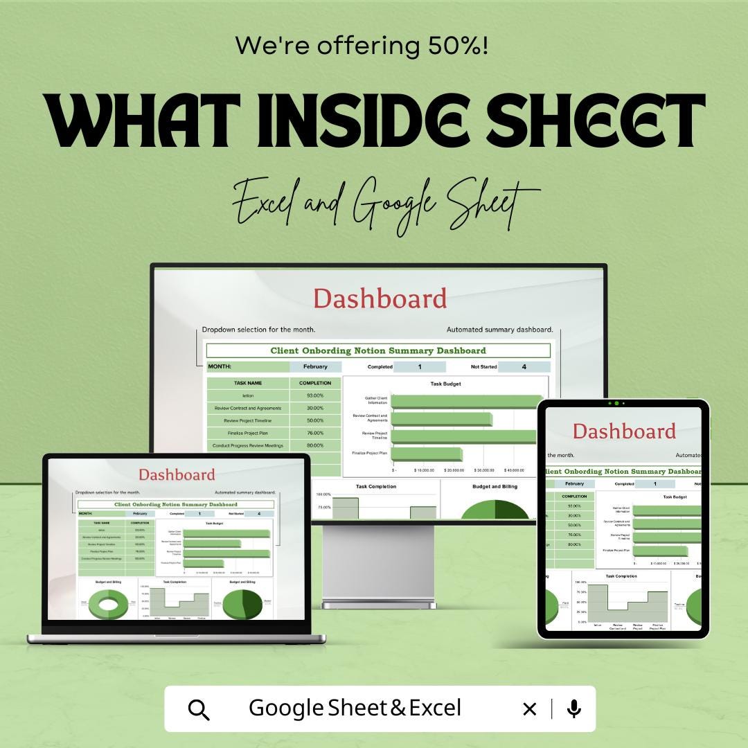 Client Onboarding Notion Dashboard Sheet | Excel and Google Sheets | Project Management Tool | Budgeting & Task Tracking
