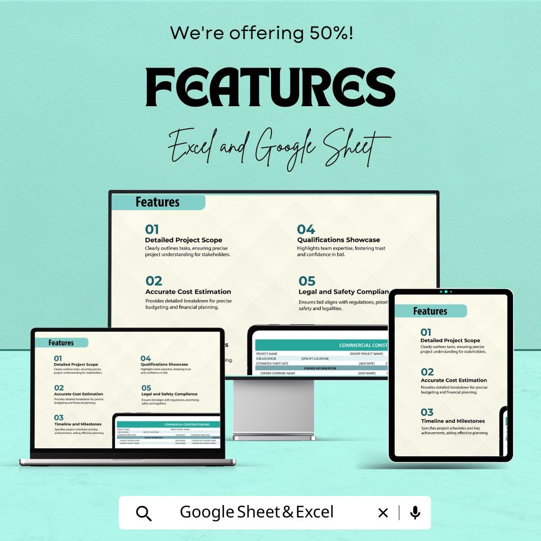 Ensure your construction projects stay on track and budget with our Commercial Construction Bid Sheet Template. This comprehensive Excel and Google Sheet template is designed to make your bidding process smooth, organized, and accurate. Whether you're a contractor, project manager, or construction business owner, this template will help you manage all your project costs, scope, and deadlines efficiently.