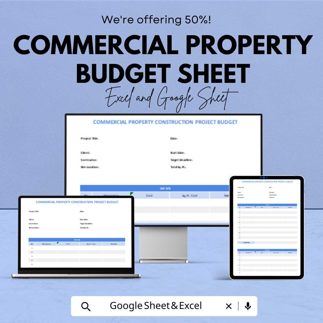 Commercial Property Budget Sheet - Excel & Google Sheet Template | Construction Project Budget Planner | 50% Off | Property Management Tool