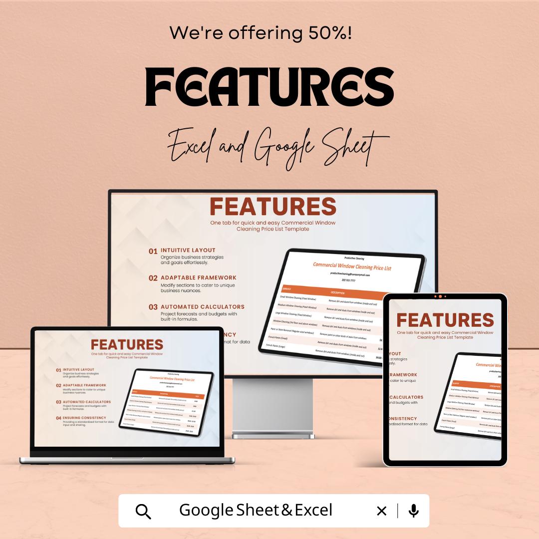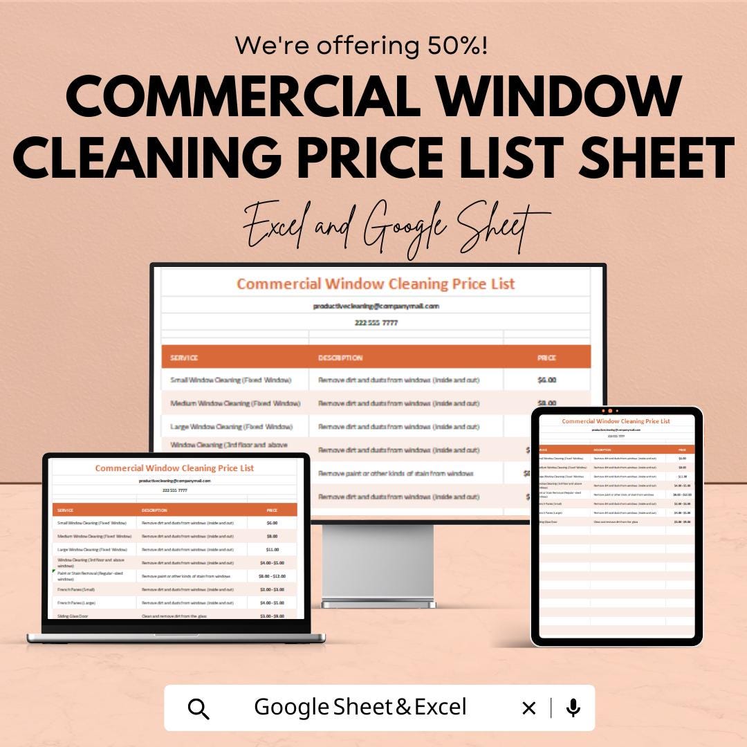Commercial Window Cleaning Price List Sheet | Excel & Google Sheets Template | Pricing Guide for Cleaners