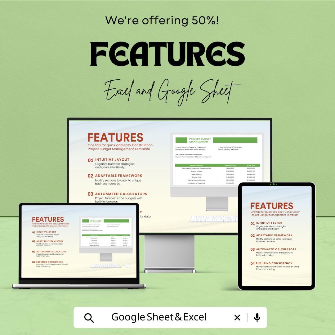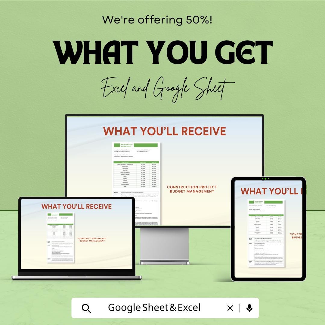 This Construction Project Budget Management Sheet is an easy-to-use Excel and Google Sheets template designed for construction professionals and project managers. Track your project costs, stay within budget, and plan ahead with this customizable and fully automated tool.