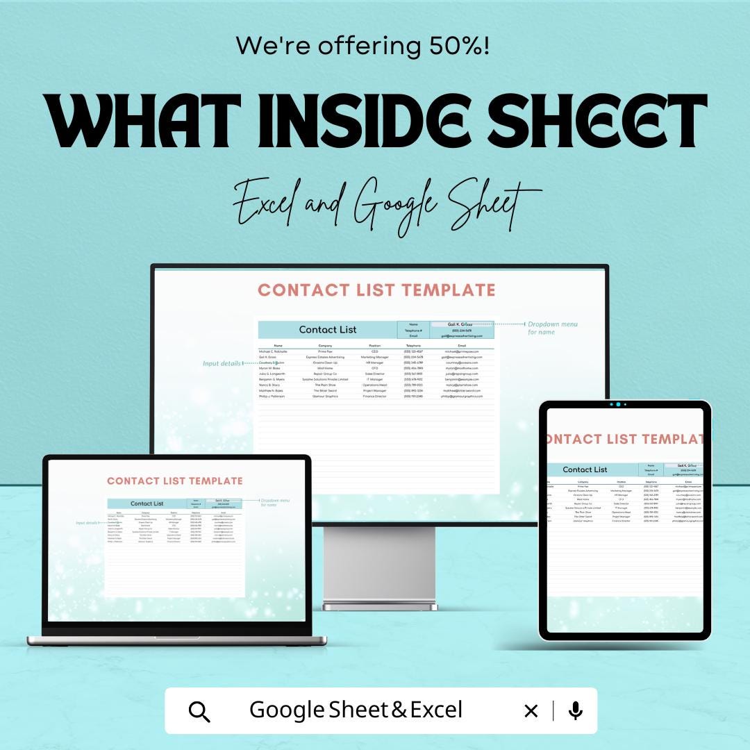 Contact List Template | Google Sheet & Excel Contact Management Sheet | Professional Contact List | Editable Contact Organizer