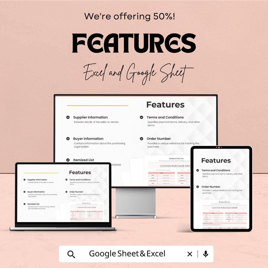 Contoh Purchase Order Sheet | Excel & Google Sheet | Simplify Procurement Process | 50% Off | Instant Download