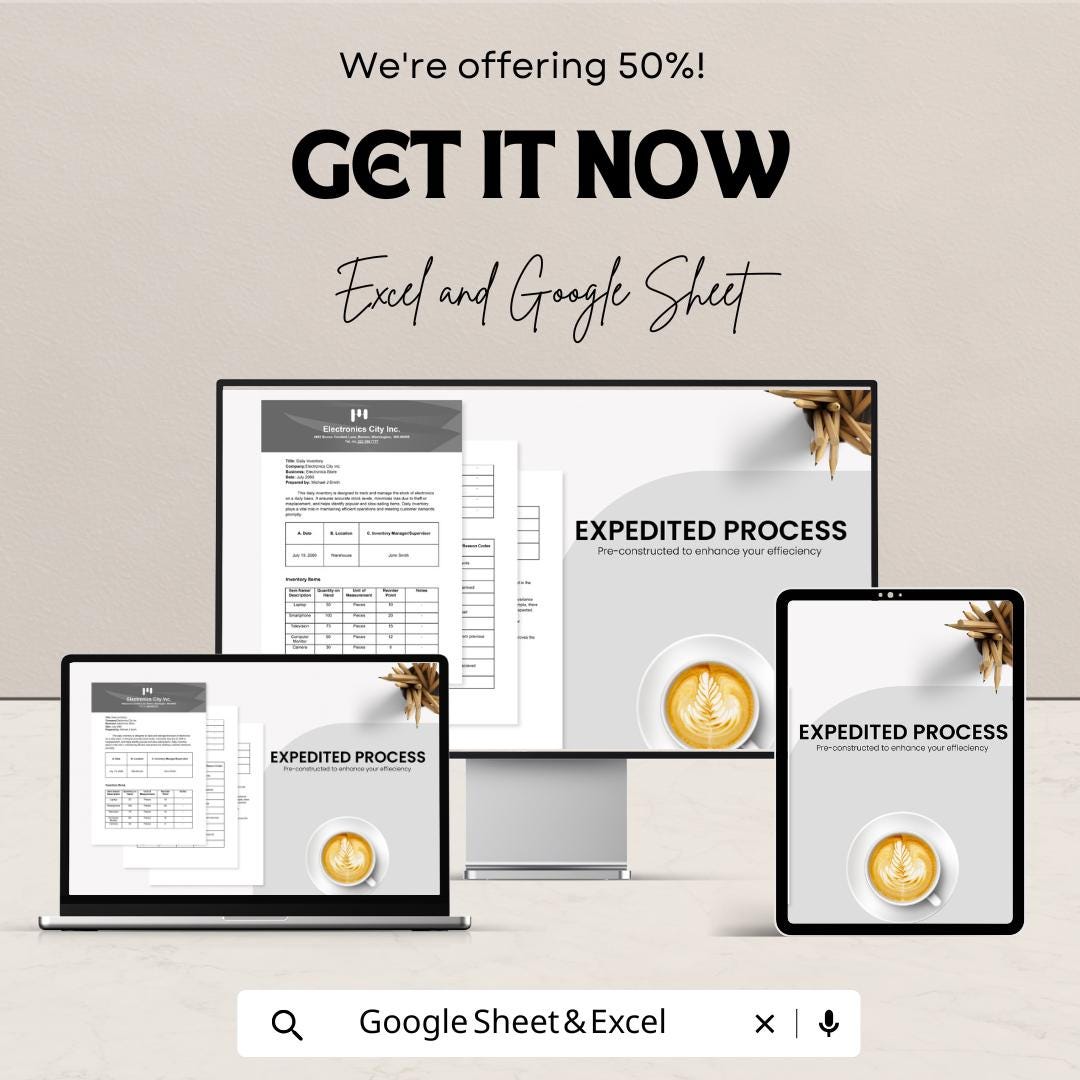A Daily Inventory Sheet Template that is compatible with Excel and Google Sheets