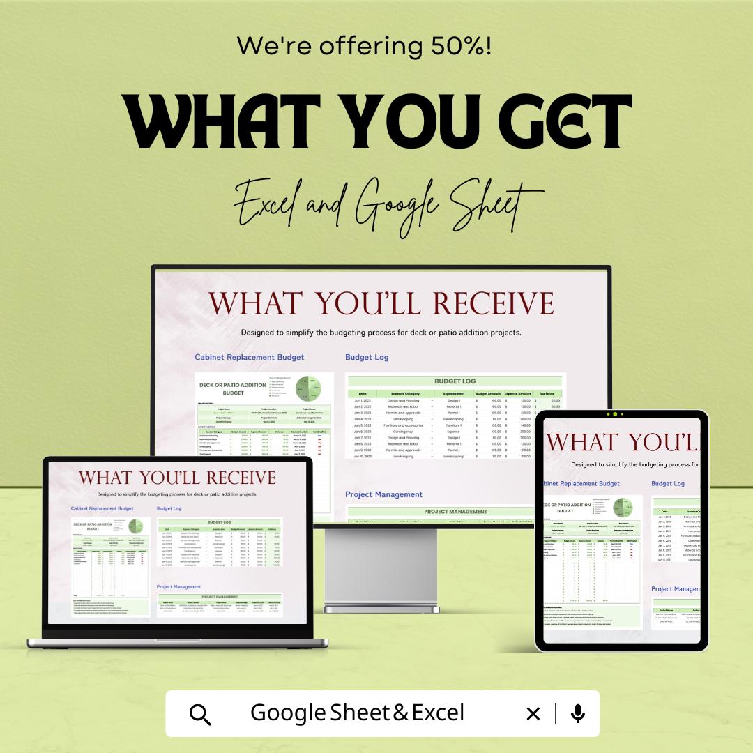 Deck or Patio Addition Budget Sheet - Excel & Google Sheets Template for Project Cost Planning