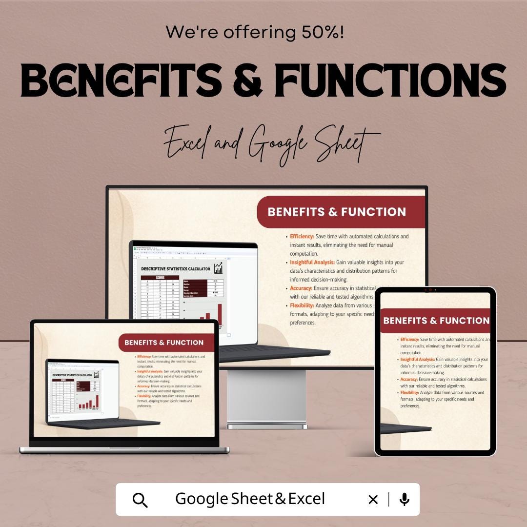 Descriptive Statistics Calculator: Input your data into the template, and the sheet will generate all relevant statistical metrics for you.